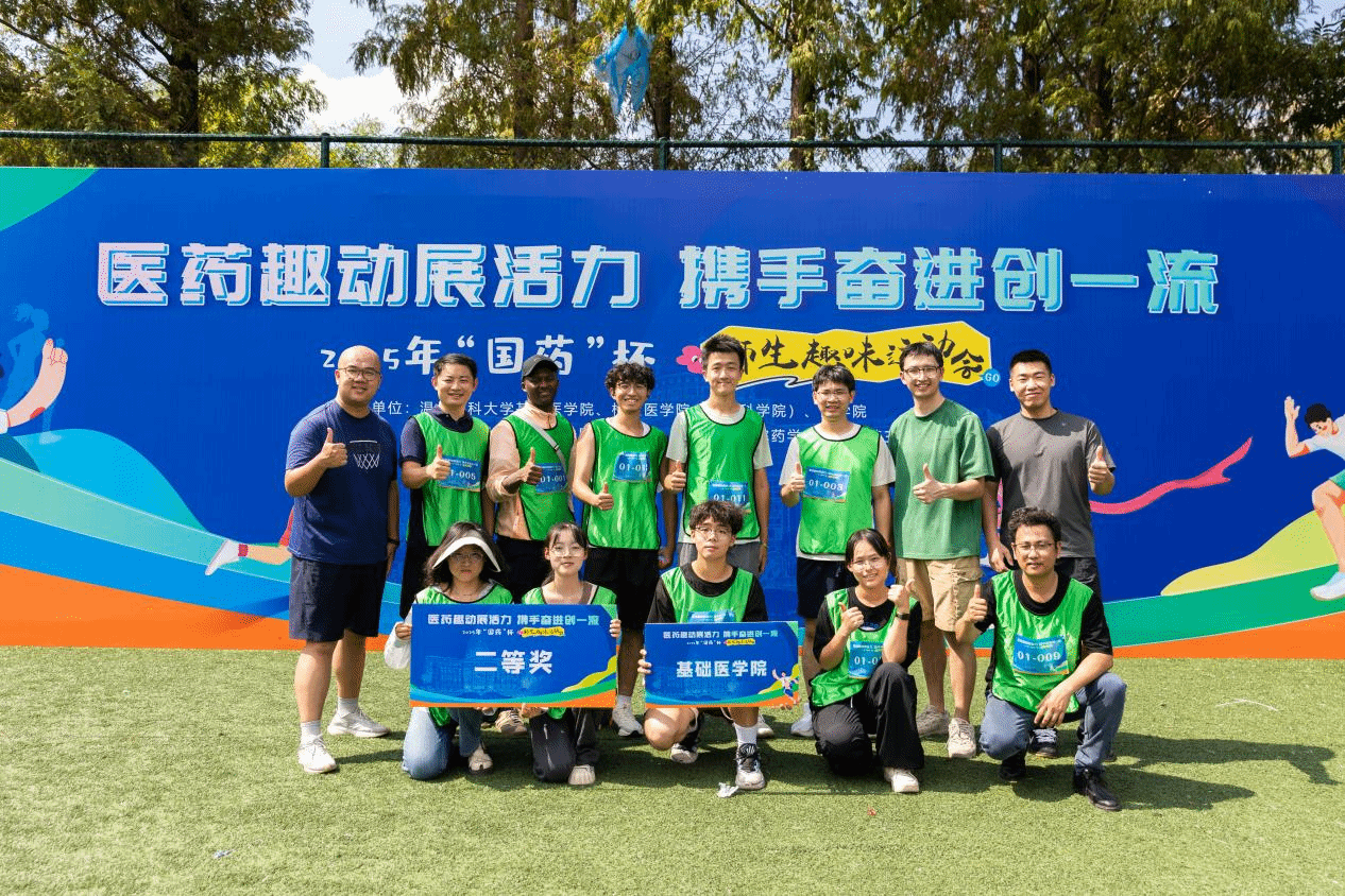 近日,“国药”杯医药学部首届师生趣味运动会在茶山校区足球运动场隆重举行。学院师生代表以饱满的热情、昂扬的斗志投身各项赛事,最终斩获团队总分第二名的优异成绩。本届运动会以“医药趣动展活力,携手奋进创一流”为主题,医药学部主任李校堃院士出席活动并发表讲话。他希望医药学部以团队合力筑就一流梦想,将赛场上的拼搏精神与协作意识融入教学科研、临床服务与产业创新,为学校医药学科争创“一流”注入澎湃新动能。本届运动会吸引了学校医药学部所属二级学院、...