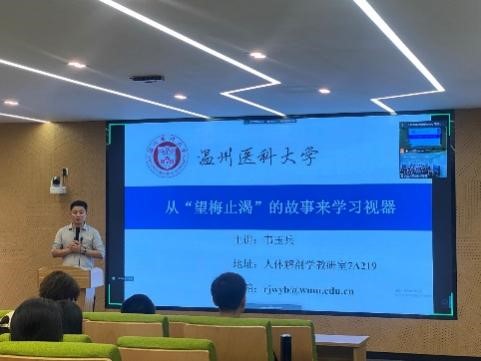 人体解剖学教研室党员教师韦玉兵老师主讲的《系统解剖学》同步课堂开讲。韦玉兵以《从“望梅止渴“的故事来学习视器》为题,讲解了眼睛的基本结构和功能,近视、远视等常见视力问题的原因,并结合蜜桃视频