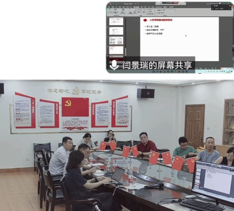 院长徐哲龙、副院长邓为民、教学办公室主任闫景瑞通过线上会议形式作认证工作分享、交流。学校教务处副处长林安琪、学院院长薛向阳、副院长蒋朋飞,各教研室主任、实验中心主任及教学办公室人员共20余人参加会议。会议由薛向阳主持