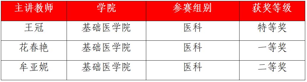 王冠老师获特等奖、花春艳老师获一等奖、牟亚妮老师获二等奖。