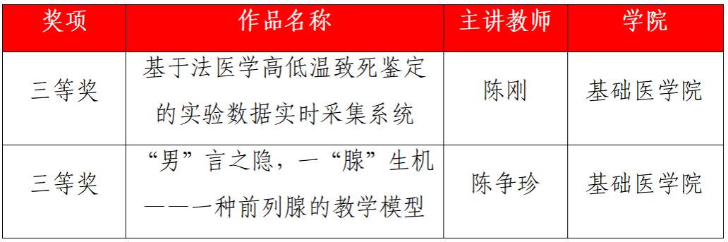 陈刚老师、陈争珍老师获自制实验教学仪器设备比赛三等奖。
