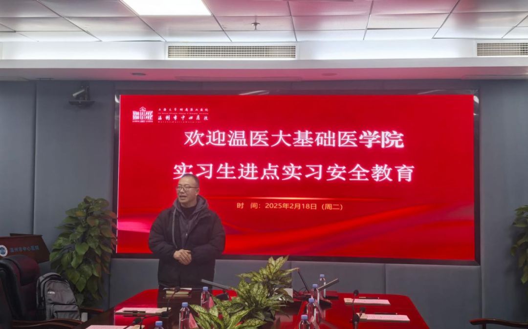 院长薛向阳、党委副书记黄宝兴、副院长蒋朋飞及相关人员专程前往温州市中心医院,参加基础医学专业实习生进点欢迎会。温州市中心医院党委书记沈淑蓉、党委委员、副院长张立群出席会议,医院教学管理部门负责人及各临床教研室主任、教学秘书、2021级基础医学专业全体学生共同参会。会议由温州市中心医院科教科科长王凯华主持。