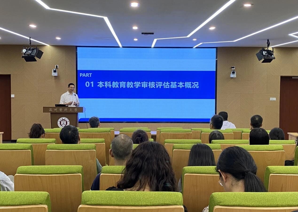宣讲会上,李章平处长结合新一轮本科教育教学审核评估的要求,对学校的办学方向与本科地位、培养过程、教学资源与利用、教师队伍、学生发展、质量保障、教学成效等应知应会内容进行了解读。他强调,审核评估与学校发展、人才培养息息相关,全体教师务必高度重视评估工作的每一个环节,高质量完成审核评估工作。