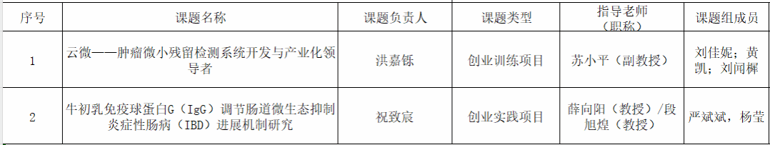 根据校团委《关于组织申报2025年国家级大学生创新创业训练计划项目的通知》和《教育部关于做好“本科教学工程”国家级大学生创新创业训练计划实施工作的通知》(教高函〔2012〕5号)精神,经自主申报、学院评审推荐,拟确定以下2个项目参评国创课题。