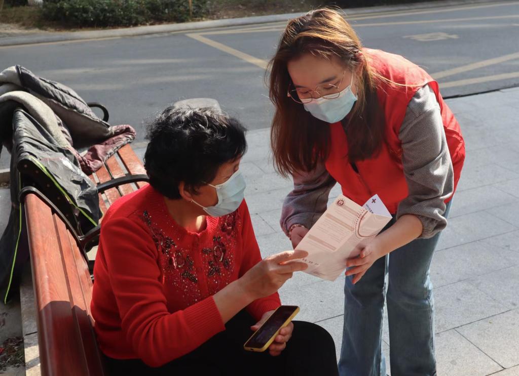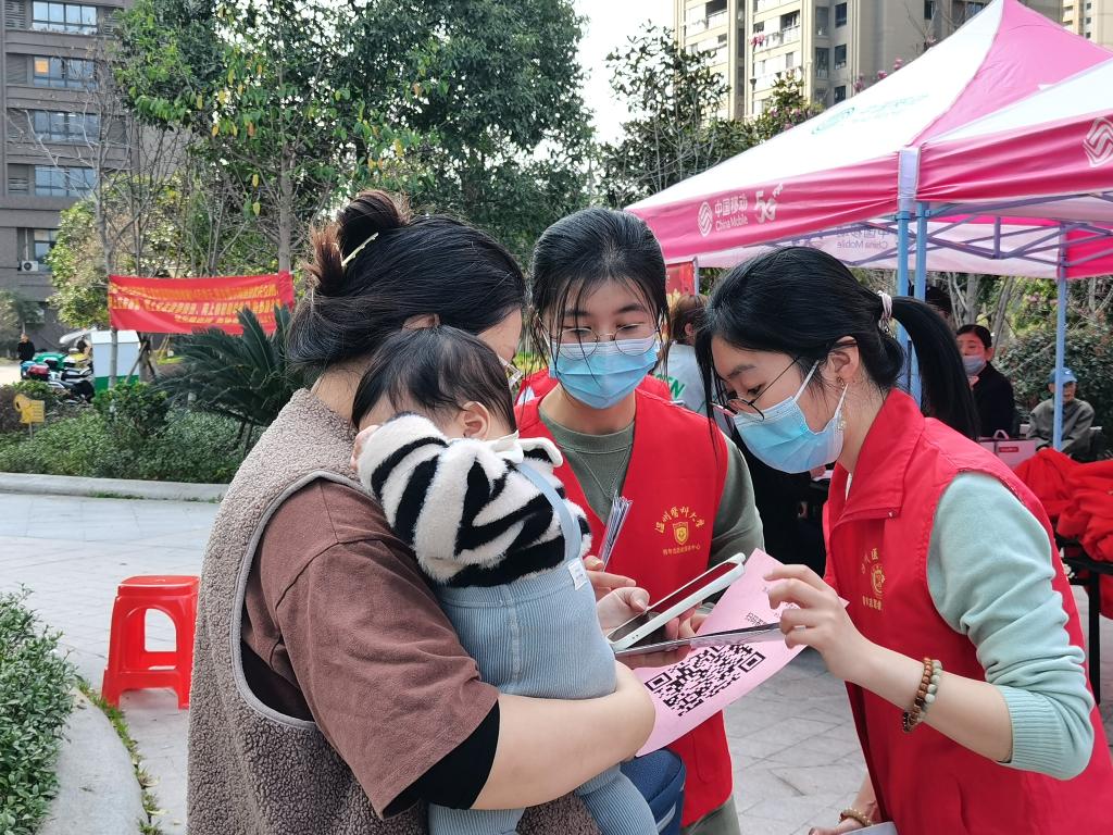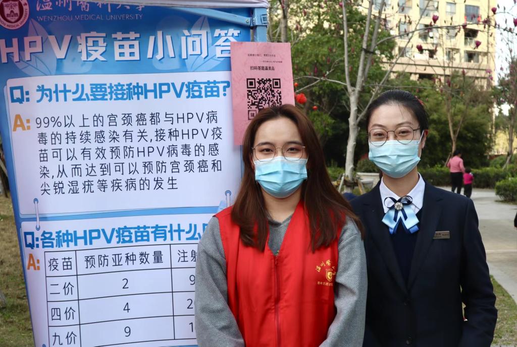 大学生健行志愿服务社成员们走进龙湾区状元街道罗西社区开展“普及HPV知识,呵护女性健康”活动。