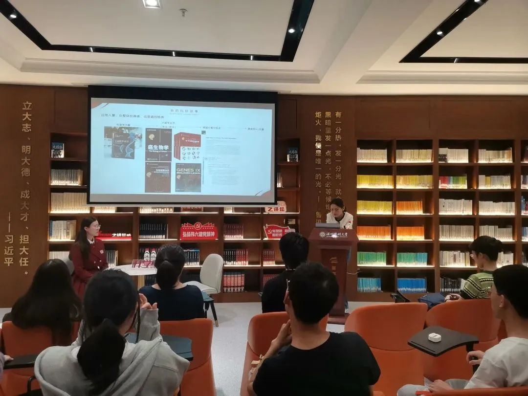 2020级基础医学博士研究生潘如璐担任主讲嘉宾,基础医学专业本科生参加交流分享活动。