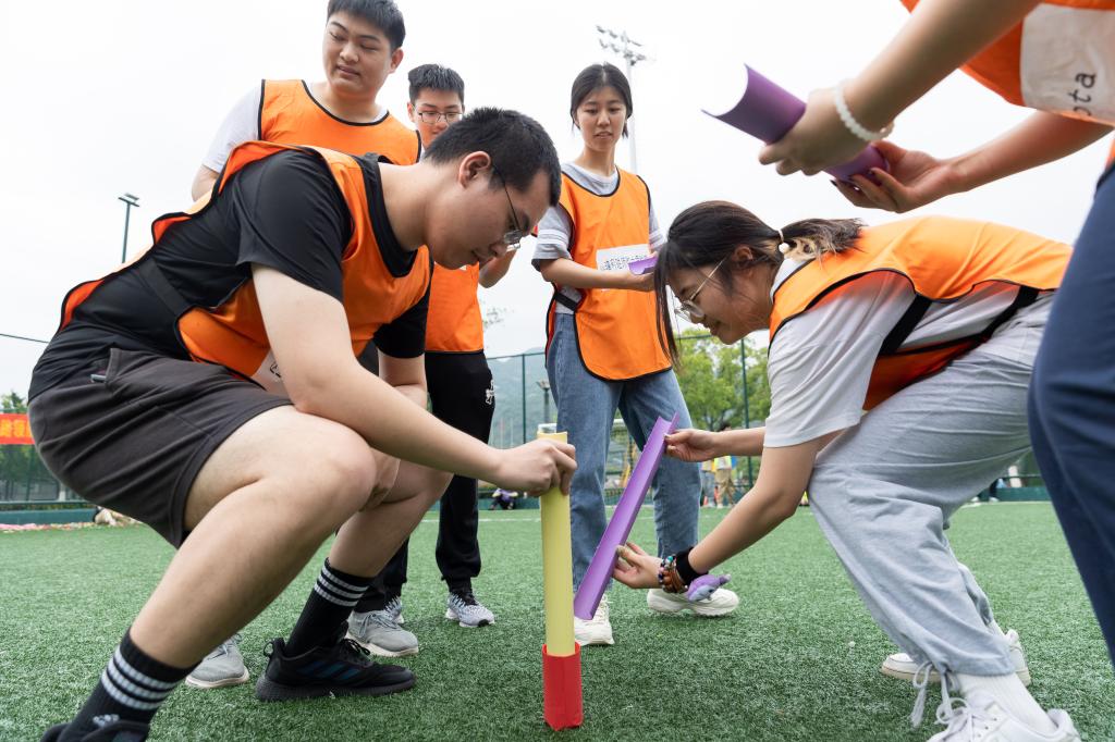 随机组队不仅活跃了现场气氛,更打破了参与同学之间的距离感。紧接着“名解飞花令”、“医路同心”、“踏浪逐梦”等游戏,也进一步增强了同学们之间的默契度和配合度。每位同学热情高涨,积极参与,素质拓展活动现场气氛达到高潮。