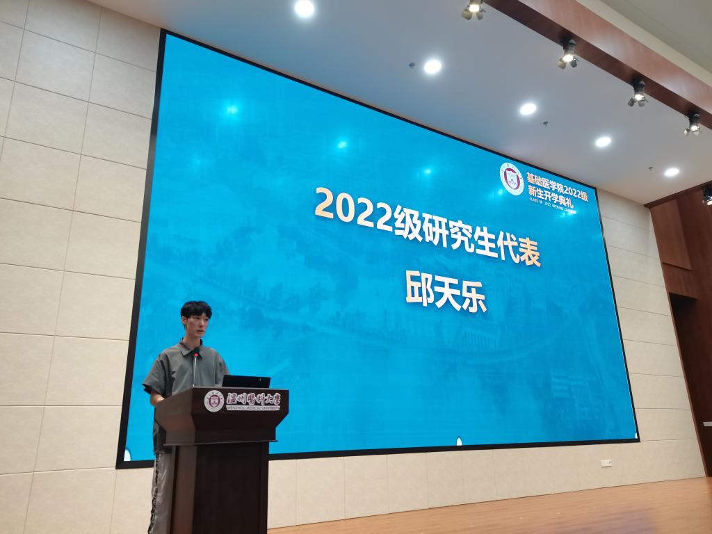 2022级研究生代表邱天乐同学表达了作为科研人的展望,表示未来的工作将影响医学领域的各行各业,作为研究生更要把握机遇与挑战,要有担当,努力与科学对话,寻求创新,在实践中坚持理想,砥砺前行。