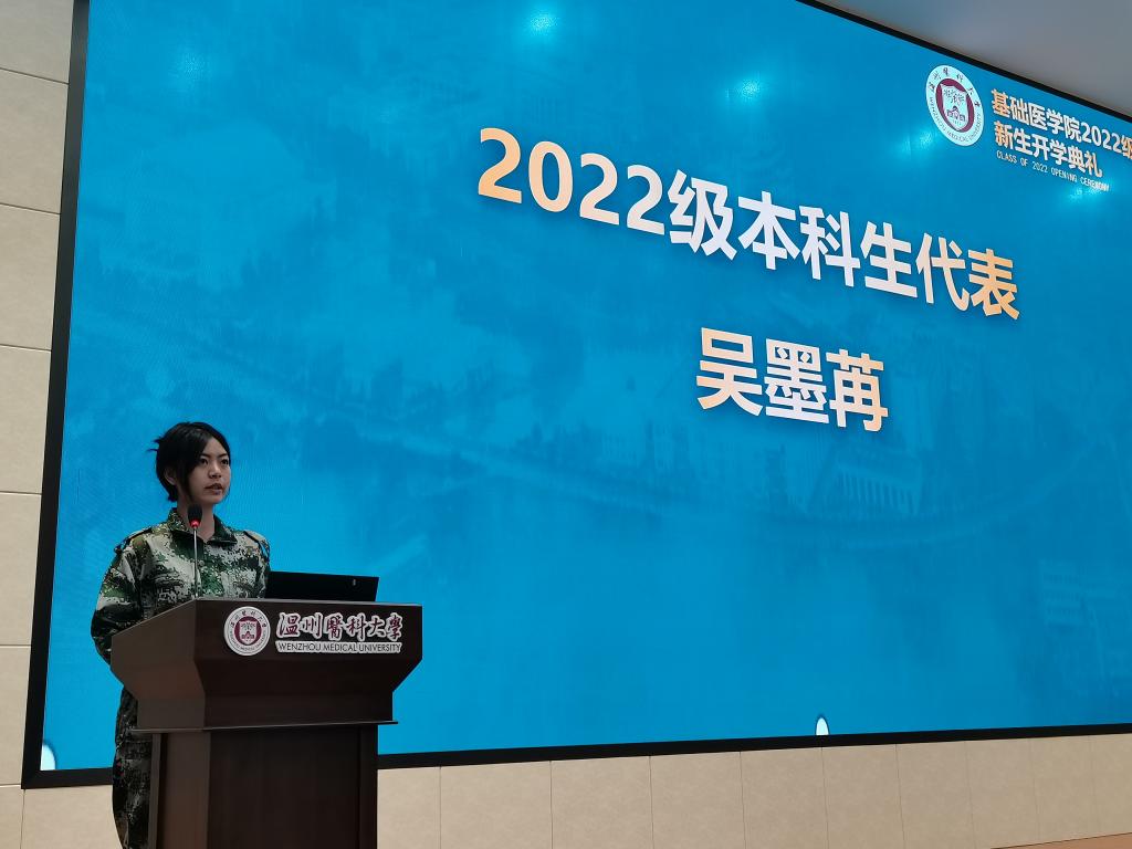 2022级本科生代表吴墨苒同学表达了进入大学校园的喜悦,对未来新的校园生活的向往和对新知识的渴望,表示同学们必将共同努力,努力学习专业知识,实现追求与梦想。