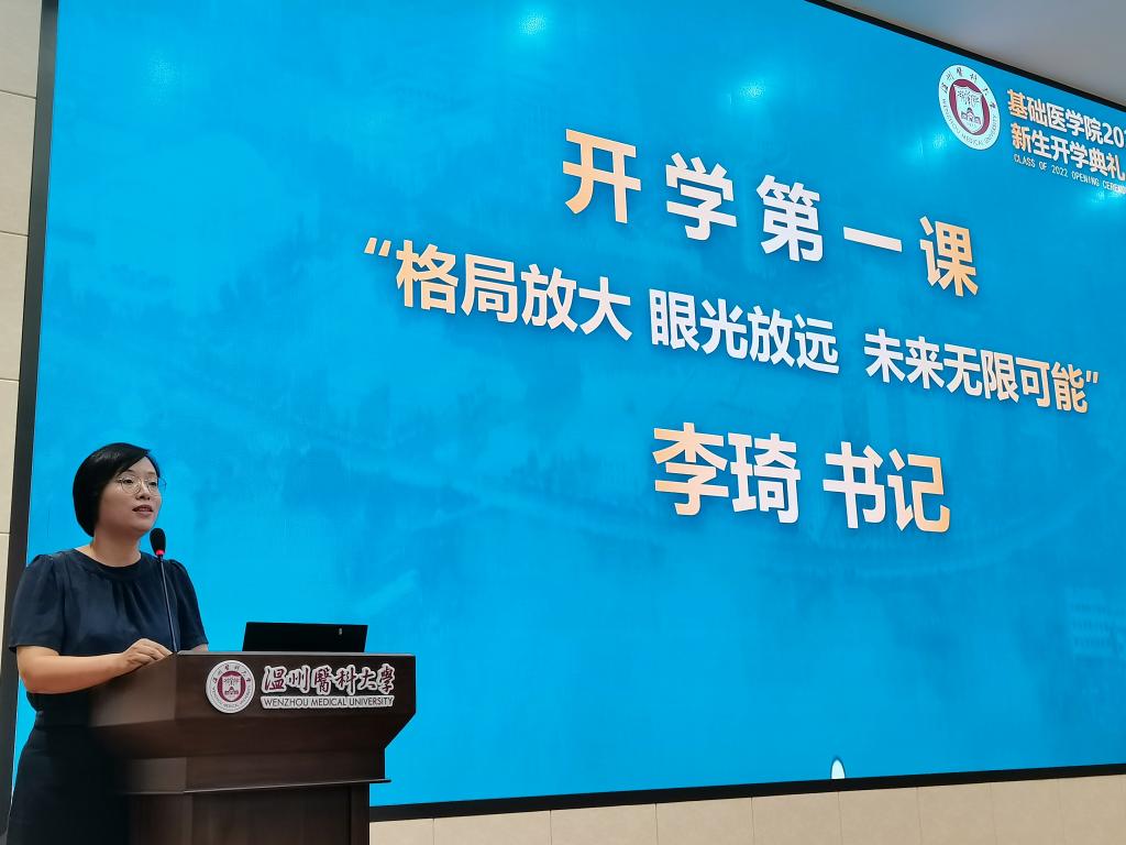典礼上,李琦书记首先为新生们上了生动的“开学第一课”。她指出作为新时代的大学生,要格局放大,眼光放远,充满希望,迎接未来。她语重心长的勉励新生做到以下三点:一是要认清现实,不骄傲自大,也不妄自菲薄;二是要格局放大,眼光放远,要懂得感恩、宽容和反思,是金子总会发光的;三是要修炼品行,融入大时代,创造自己的未来。