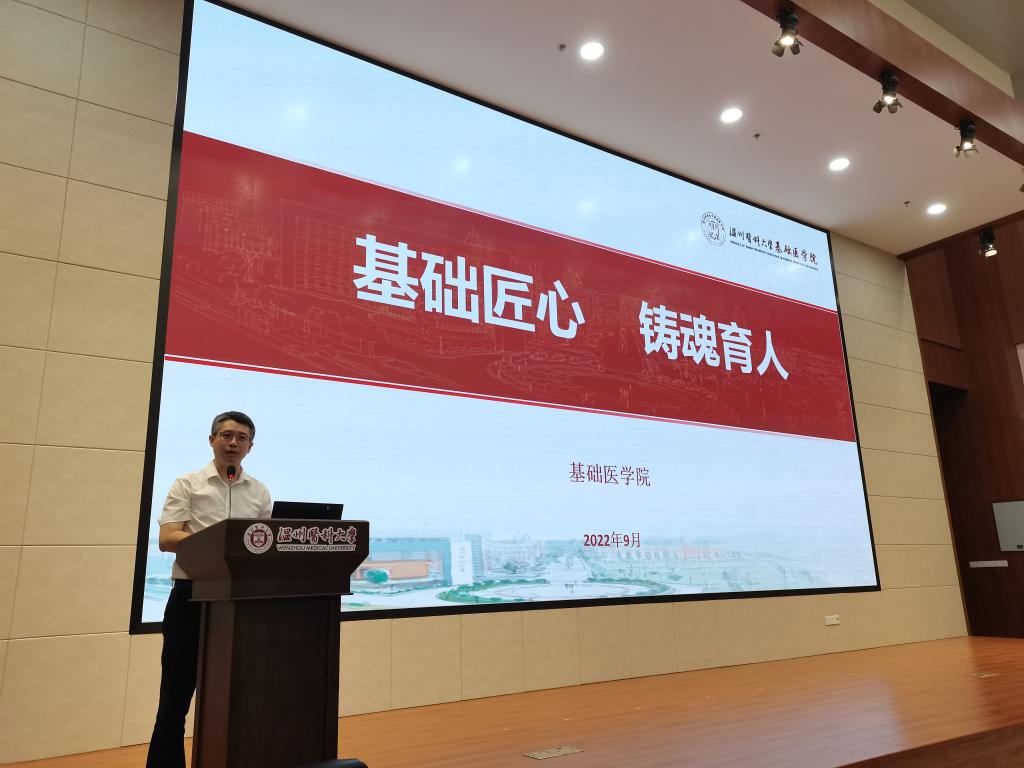 向新生们进行了详细的介绍。同时,金献测副院长也表达了对新生力量的期望,期待着同学们用全新的思维,全新的面貌,在基础医学的专业领域里迸发出新的生机。