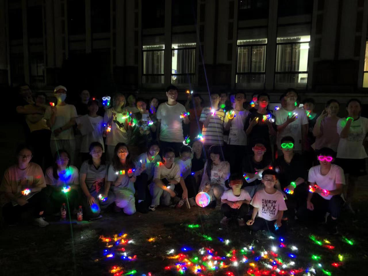 本次活动中,工作人员们在各处打卡点等待着同学们的到来。经过点位即可获得荧光贴纸,作为打卡证明的同时,也随着同学们的移动化作黑夜里的流萤,妆点了校园。每一个点位都是一个小阶段的成功,就如同我们这漫长的医学生活,需要一小步一小步地努力前进。