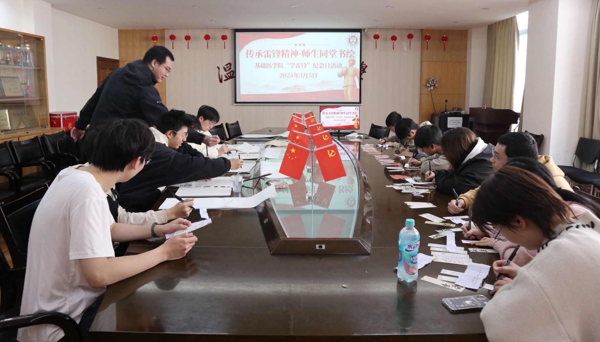借以此次活动开展爱国教育,依托书法等多种形式,弘扬传承雷锋精神,基础师生从中深切感受其对党对国的无限忠诚,乐而忘私的奉献精神。在这次开展学雷锋文化活动中,基础师生积极参与活动,在抄录雷锋语录的过程中,参与者们激情澎湃,纵情挥毫,于横竖撇捺中体会雷锋舍己为人,一心为国的高尚情操。