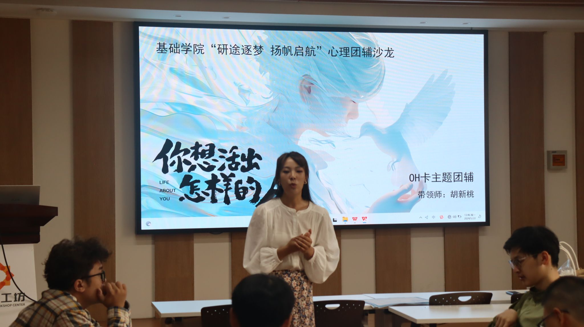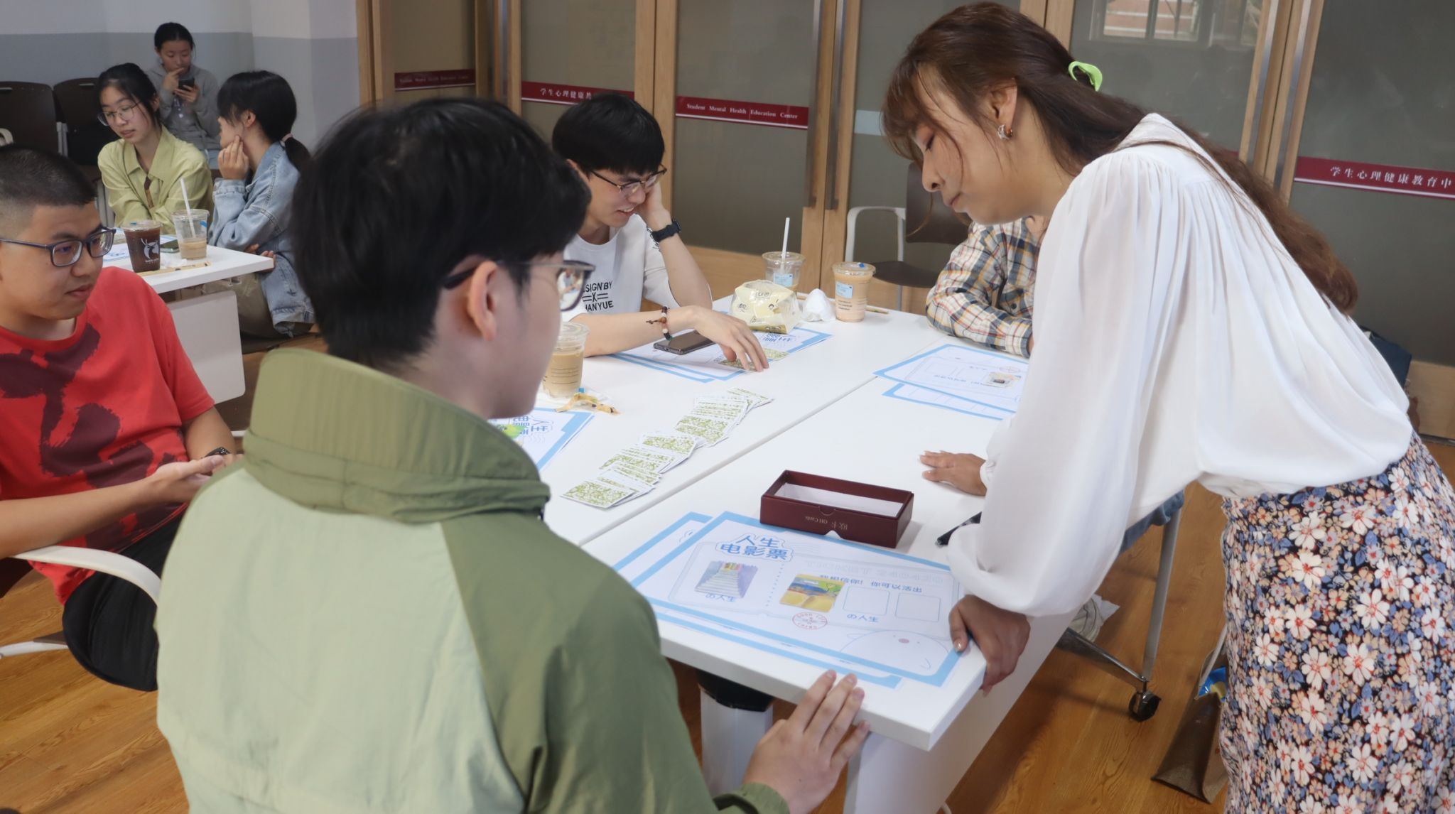 为了解同学心理状况,缓解考研带来的紧张感,学院还邀请学校心理健康教育中心胡新桃老师,为与会同学开展OH卡主题团体心理辅导,通过“镜中的我”“进入异世界的8块积木”“人生电影票”等互动游戏,帮助同学们表达自我,探索自我,排解压力,在交流中体会到身边人的支持。