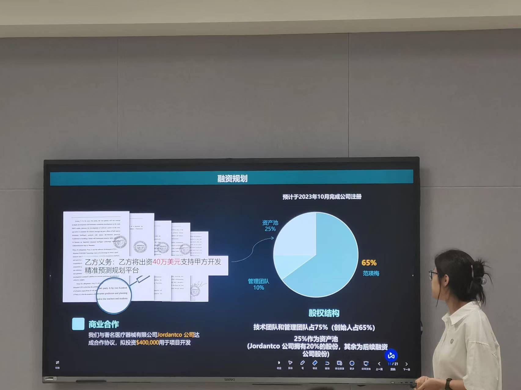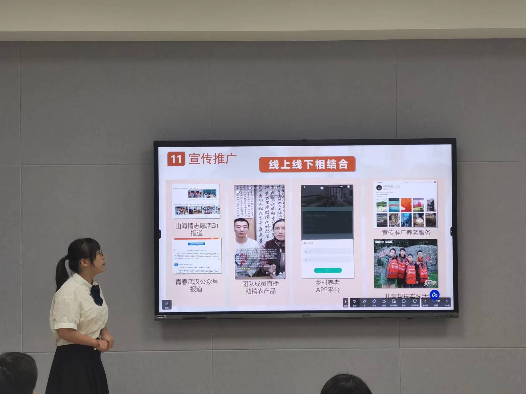 本届赛事自启动以来,学院师生团队积极报名参赛,共计申报了10项作品。本次比赛分为项目路演和现场答辩两个环节,各参赛团队通过项目阐述、实物展示等,各参赛团队围绕项目概况、政策背景、产业优势、商业模式、团队结构、发展前景等内容进行路演展示。评委根据各项目实际进行提问,并就项目选题、创新挖掘、文本规范、推广应用等细节与难点进行点评,同时结合竞赛评审要点给予参赛项目精准指导意见,专家的建议逻辑清晰、深入浅出、直指痛点,为参赛团队提升项目质量打下了坚实基础,指明了发展方向。