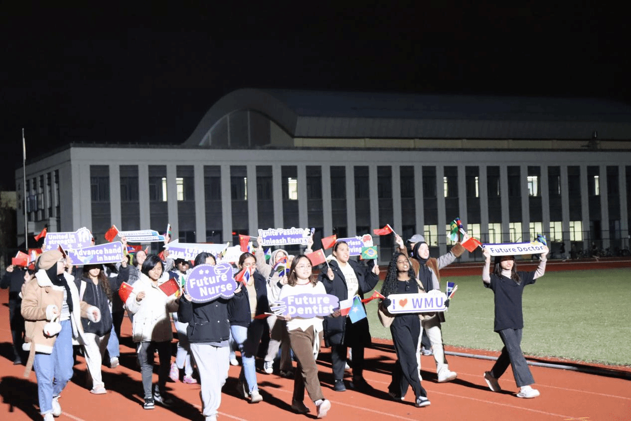 与中医药学院于茶山校区操场处共同开展“乐享运动,糖控健康行”夜跑活动。在校学生积极广泛参与其中。