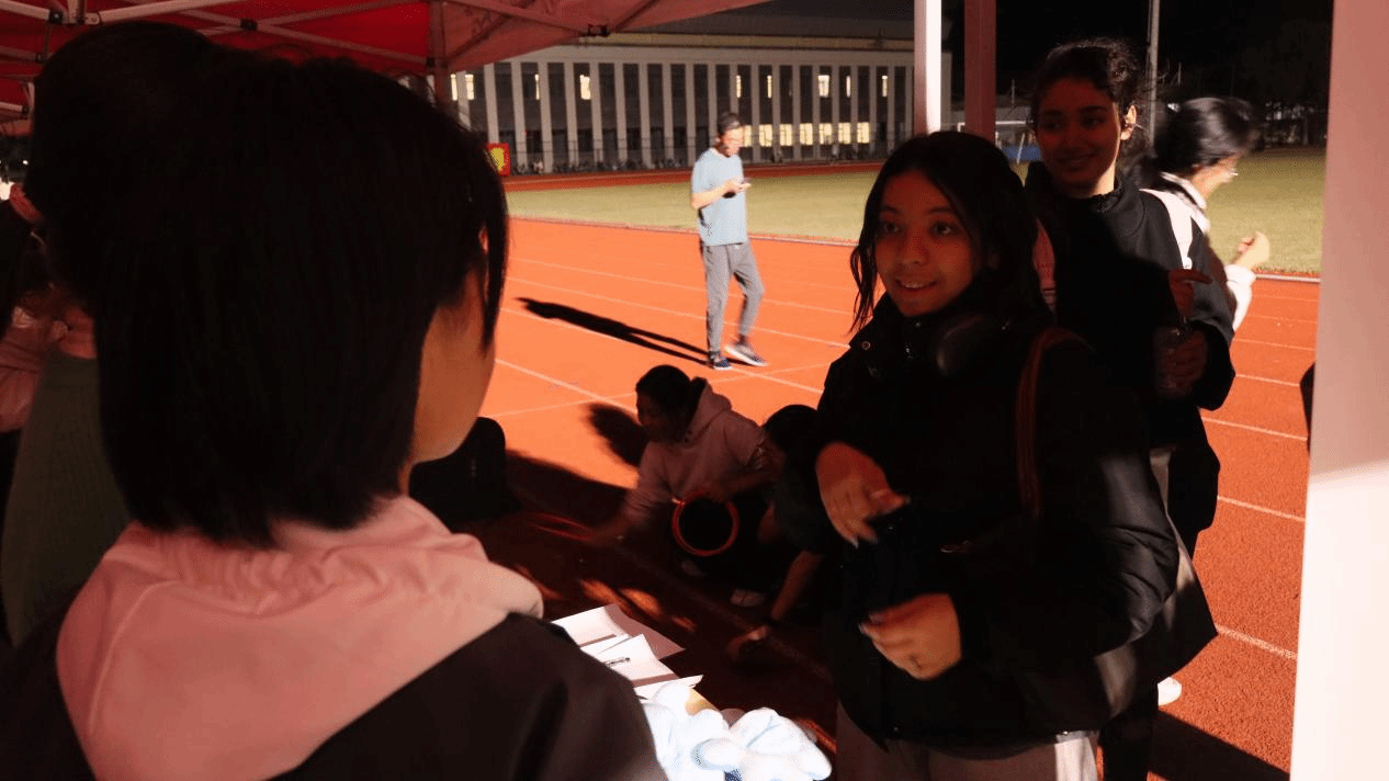 随后经过奔跑的同学们回到主席台下,在工作人员的引导下参与知识问答环节,通过深入了解糖尿病相关知识,回答问题并领取小奖品,并在此之后依据运动软件所记录的夜跑里程数,以400米一次机会来参与套圈小游戏。