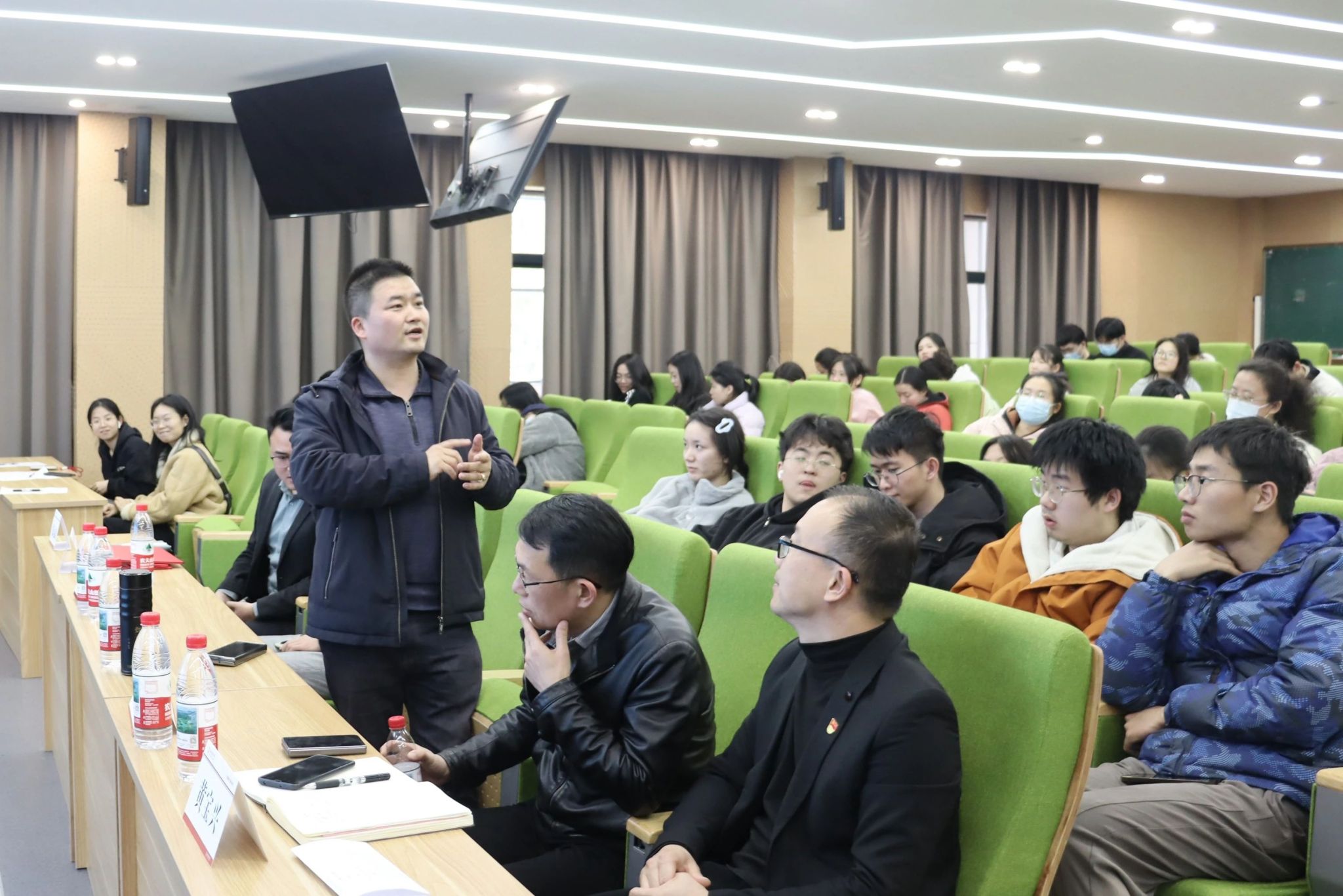 活动现场,同学们积极与嘉宾互动,围绕科技创新、创业实践、职业规划等方面互动交流。嘉宾们耐心解答,进一步激发了同学们的学习热情和探索精神。