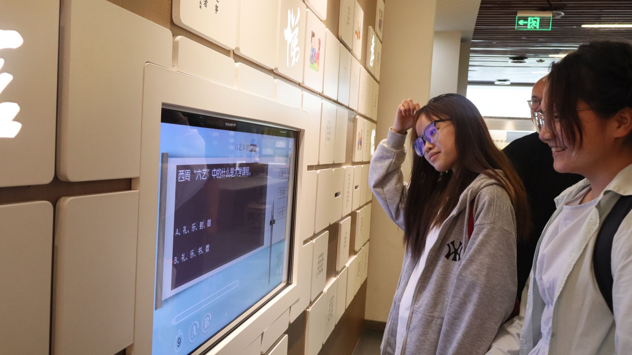 在第二站温州府学文庙展览馆中,同学们在观看相关材料后了解到永嘉学派,儒家思想“仁、义、礼、智、信”的内涵等多方面的文化知识,并在参与科举相关知识问答时切身体会到温州青砖黛瓦中蕴藏的深厚文化底蕴。