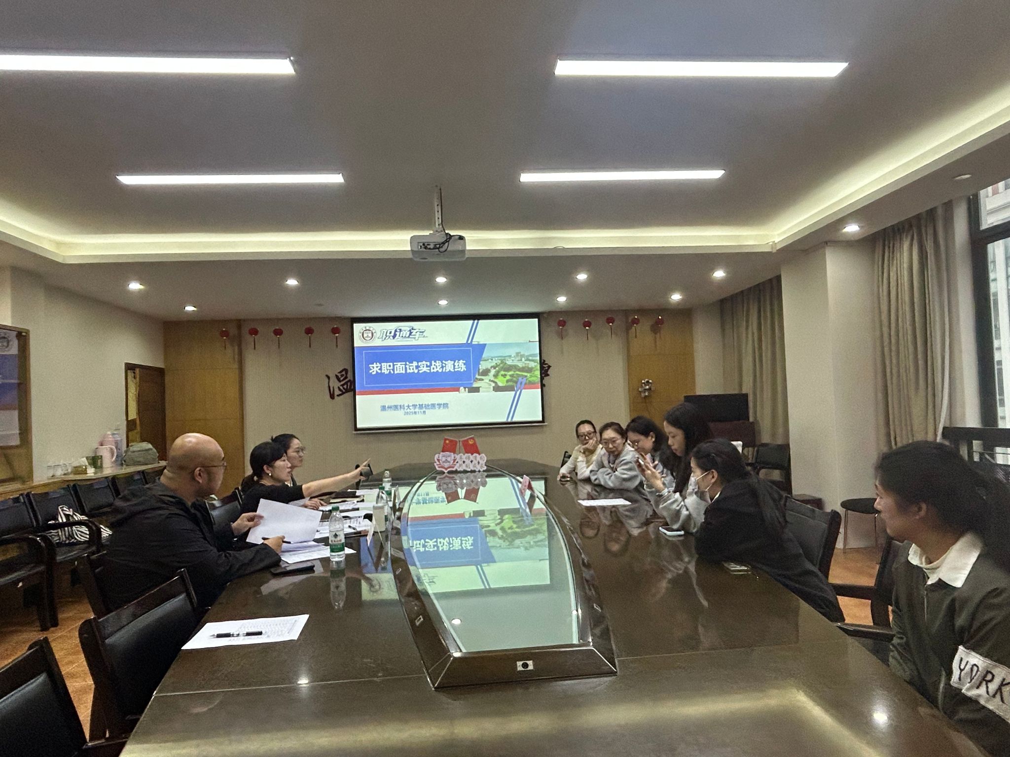 在7A212组织了一场针对性极强的求职面试实战演练。学院20余名研究生积极参与,活动由研究生辅导员张玲玲主持,第一临床医学院研究生管理科刘美华老师、学院学生工作办公室彭翔老师、生理学教研室李旭老师组成专业评委团,为毕业生求职之路精准导航。