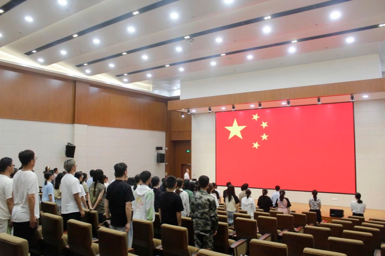在国歌声中,学院2023级新生开学典礼拉开了帷幕。