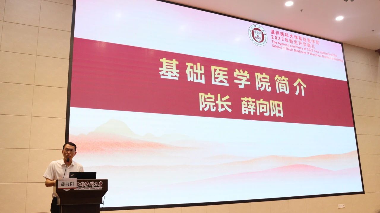 典礼伊始,李琦书记向新生讲授开学第一课。李琦书记分别从温州的人文、地理、温医大的百年历史传承、基础大先生以及“周健”精神等进行介绍,让新生快速融入新环境,接受温医大精神洗礼。她还殷切嘱托所有新生:一是在科研实验中要脚踏实地,做事创新;二是在学习生活中修炼品行,志存高远;三是树立目标时要放开眼界,放大格局。最后,她希望新同学能够传承温医大精神,成为堪当大任的时代新人。