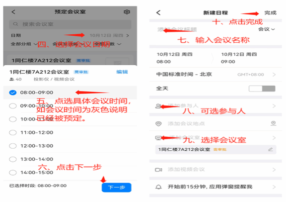 可以通过钉钉预定会议室,必须由本院教职工发起申请,电脑端和手机端具体操作流程如下:
