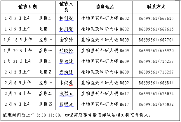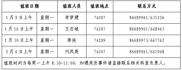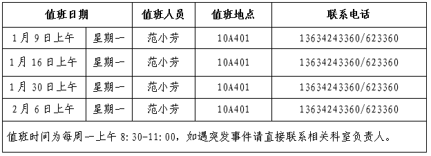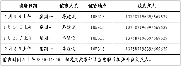 2023年寒假值班具体安排如下: