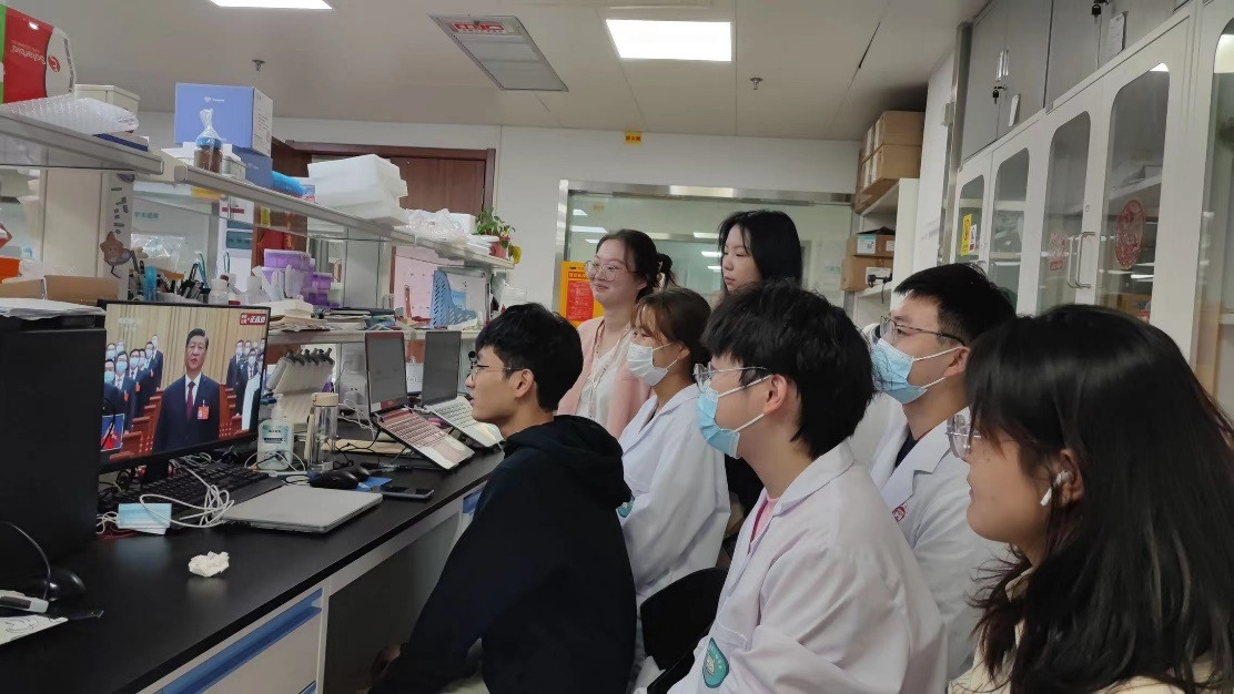 研究生第一党支部党员陈星安:收听收看党的二十大报告,深切的民族自豪感油然而生。党的十八大以来,我们迎来了中国共产党百年华诞,打赢了脱贫攻坚战,中国特色主义进入新时代,我们铸就了激荡人心的东方传奇。新时代,我们每个青年人都应当努力争做奋斗者。作为医学生,用自己的所学服务社会是我的初心所在。我会不断刻苦钻研,虚心向老师请教,努力成为一名有格局,能担当的时代青年。