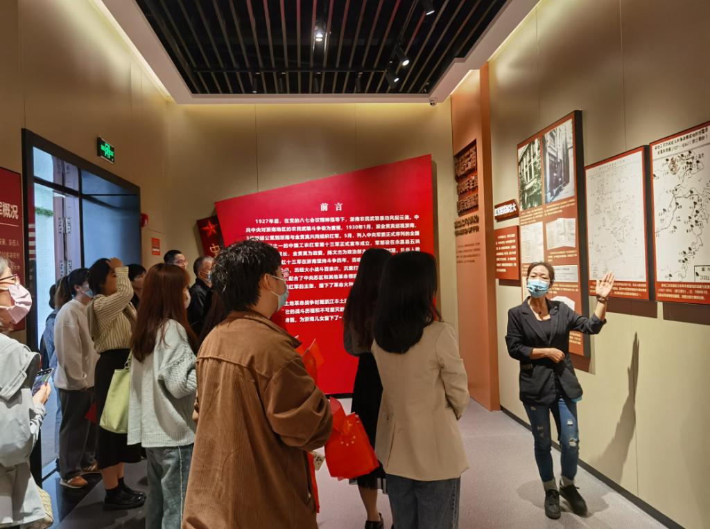 在红十三军教育基地展馆,讲解员为大家介绍了红十三军在浙南地区的光辉历史。通过观看展馆中的实物、图片、影像资料,大家一起回顾了那段不平凡的岁月,感悟革命先辈的牺牲精神。在红十三军纪念碑前,全体人员鞠躬默哀,表达对逝去革命烈士的哀思和敬意。