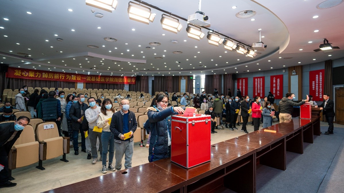 而团结奋斗》的报告。报告从七个方面回顾总结了过去五年学院党委的工作:一是加强党的领导,党的建设开创新局面;二是完善思想政治工作体系,把思想政治工作贯穿教育教学全过程;三是加强本科教育建设,提高教育教学质量;四是深化专业内涵建设,提升基础医学人才培养质量;五是强化学科引领,科研水平显著提高;六是强化师德师风,教师队伍建设提质增效;七是优化学院治理体系,营造风清气正学院文化。