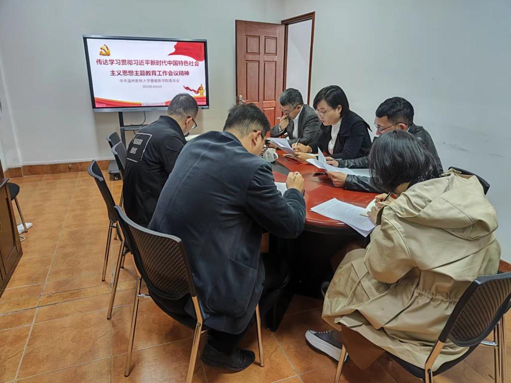 会议指出,开展主题教育意义重大、事关全局,要以高度的政治自觉、思想自觉、行动自觉,把开展主题教育作为当前和今后一个时期的重大政治任务,抓紧抓实抓好。要牢牢把握“学思想、强党性、重实践、建新功”总要求,通过党委理论中心组学习、支部主题党日活动、“三会一课”等形式,迅速组织党员学习《习近平著作选读》《习近平新时代中国特色社会主义思想专题摘编》《习近平科学的思维方法在浙江的实践》等教材,跟进学习习近平总书记最新重要讲话精神,兴起开展主题教育热潮。要切实把习近平新时代中国特色社会主义思想转化为坚定理想、锤炼党性,指导实践、推动工作的强大力量,充分发挥党建引领作用,把党建工作和学院发展规划、中心工作相结合,推动党建和教育事业同频共振、精准融合,助推学院高质量发展。
