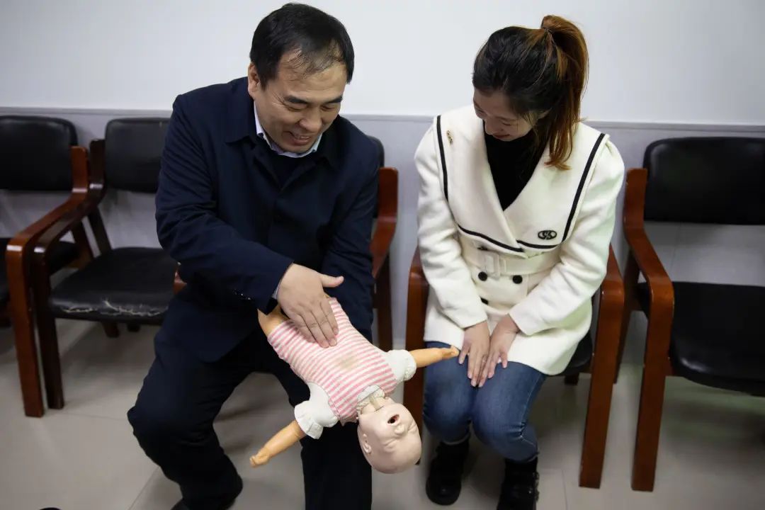 范小芳教授为中伦村居委会志愿者和居民们开展了心肺复苏、海姆立克法急救等培训活动。
