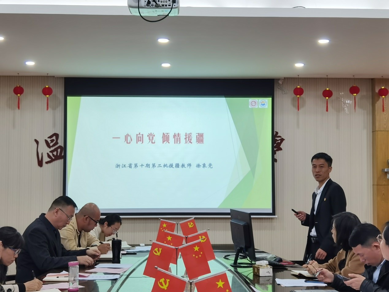 会上,学院援疆干部徐象党以《一心向党倾情援疆》为题,分享援疆工作经历。会议还开展了警示教育,观看了温州市查处的政商关系典型案件警示教育专题片。