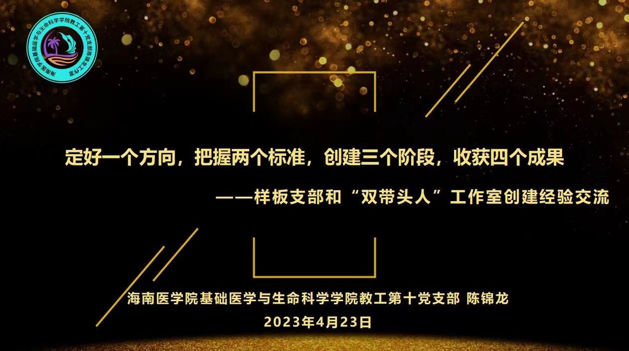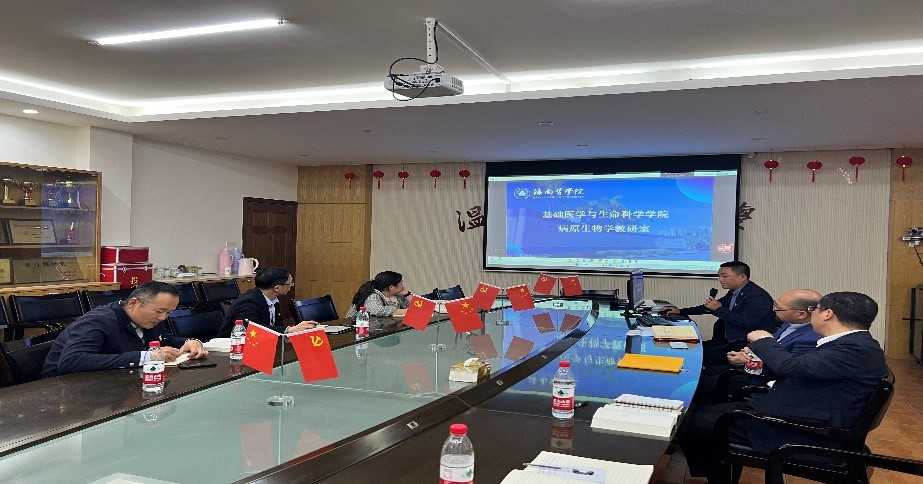 首先,双方党支部书记就党支部建设及党建和教育事业融合的情况进行了交流和汇报。病原生物学与免疫学系党支部书记刘文权以“党建引领促发展,教学相长创一流”为主题,介绍了该系党支部在党建促教学,党建助科研和党建育人才等方面的经验和成果。海南医学院基础医学与生命科学学院第十党支部书记陈锦龙以“定好一个方向,把握两个标准,创建三个阶段,收获四个成果”为主题分享党支部在创建“全国党建工作样板支部”和“海南省双带头人”工作室方面的经验。