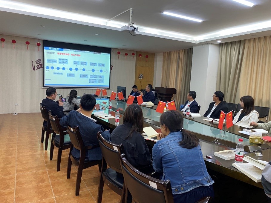 随后,两个党支部的教研室主任就教学和课程建设进行了交流。病原生物学与免疫学系党支部医学寄生虫学教研室主任黄慧聪、医学微生物学教研室主任陈薪安和医学免疫学教研室副主任董海艳分别就《医学寄生虫》《医学微生物学》和《医学免疫学》在建设国家和省级一流课程中的经验进行了交流和分享。海南医学院病原生物学教研室主任崔秀吉介绍了病原生物学教研室的基本情况以及在课程建设方面遇到的问题,并希望通过此次交流学习经验。病原生物学与免疫学系党支部各教研室主任针对海南医学院老师感兴趣的课程学时分配、内容设置和形成性评价等问题进行了详细的解答,梁韶晖教授就混合式课程建设和授课实施举措等内容也对海南医学院进行了细致的指导。