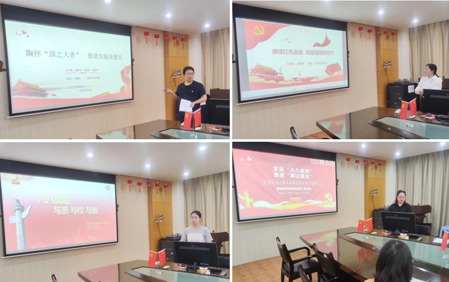 经各支部推荐,6名教师党员和2名学生党员参与比赛。大家紧扣主题,围绕深入学习宣传贯彻习近平新时代中国特色社会主义思想,结合自身工作体会,深情讲述“八八战略”指引下的学校、学院发展故事、奋斗故事和对“八八战略”的深刻感悟。