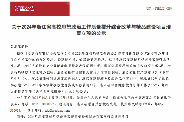 近日浙江省教育厅公布2024年度省高校思想政治工作质量提升综合改革与精品建设项目名单,学院《致敬“无言良师” 培育医者大爱 ——蜜桃视频