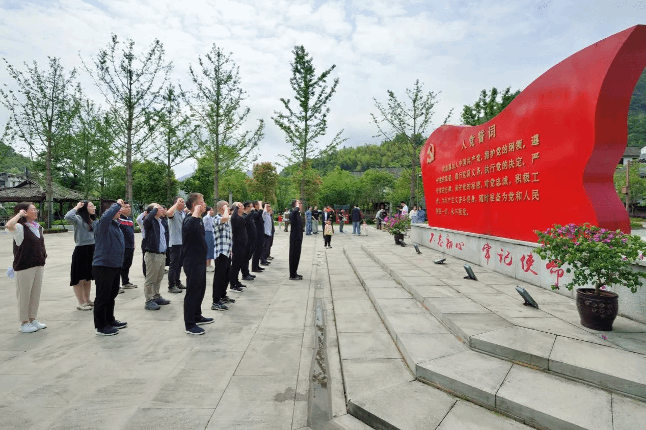 在红十三军教育基地(中国工农红军第十三军军部旧址),学院党员干部和教工向人民英雄敬献花篮、默哀致敬,共同缅怀革命先烈。在讲解员的带领下,沿着历史的脉络参观了红十三军纪念馆,深刻感受红色文化氛围。“我志愿加入中国共产党,拥护党的纲领,遵守党的章程……随时准备为党和人民牺牲一切……”,在学院党委副书记黄宝兴的带领下,党员教工面向党旗,举起右手,重温入党誓词,铿锵誓言表达了忠于党和人民的坚定信念和为共产主义事业奋斗终身的决心。