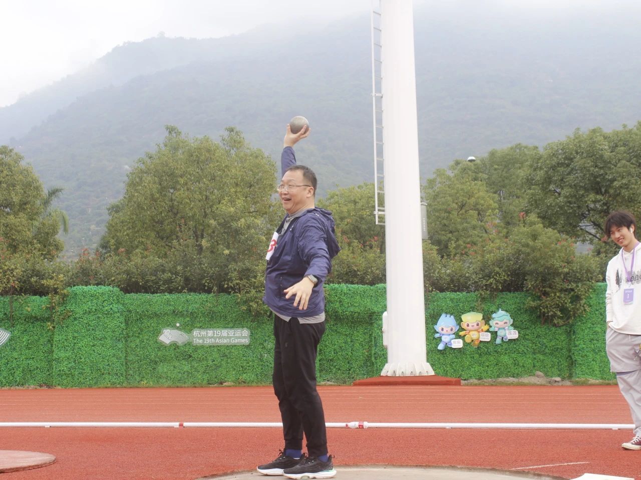 周鹏获教乙中年男子组铅球第二名。