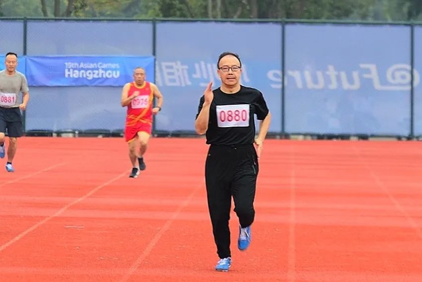 杨新东获教乙中年男子400米第三名。