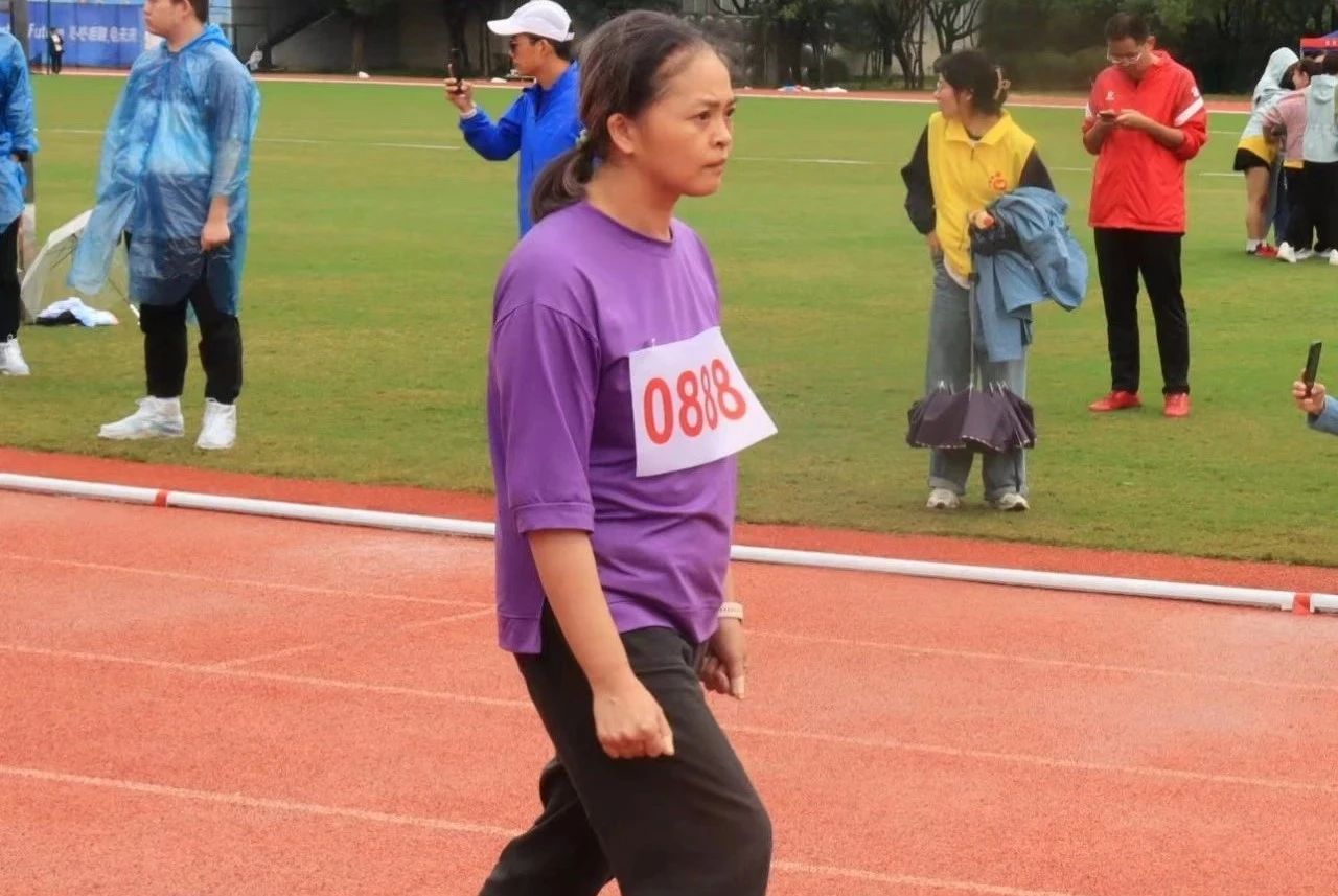 董仙飞获教乙中年女子立定跳远第三名。