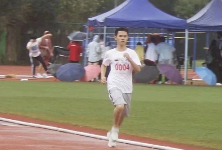 学生组方天获男子100、200米第三名。