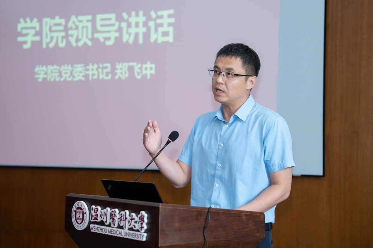 郑飞中作总结讲话,他对学院老一辈教育工作者们的辛勤付出表示感谢,对新入职的教职工表示热烈的欢迎。他指出,师德具有丰富的精髓和内涵——敬业、爱生、严谨、创新,老一辈教师以自身行动诠释了师德真谛,是学习的楷模。他表示,教师是立教之本、兴教之源,希望新教职工在以后的工作中牢记为党育人、为国育才的初心使命,传承涵养高尚师德;勤学不辍,勇于创新,争做“经师”与“人师”相统一的“大先生”;乐教爱生,启智润心,努力培养德智体美劳全面发展的社会主义建设者和接班人,共筑教育强国梦。