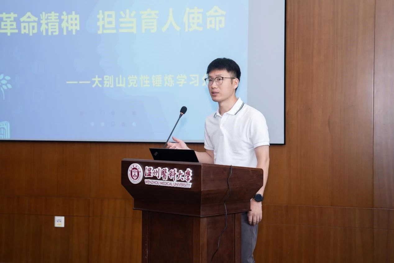 青椒成长营营员孙鹏老师以《赓续革命精神 担当育人使命》为题,分享他在大别山干部学院参加青年教师党性锤炼学习体会,深刻阐述了“坚守信念、胸怀全局、团结奋进、勇当前锋”的大别山精神,引导青年教师树立“躬耕教坛、强国有我”的志向和抱负。