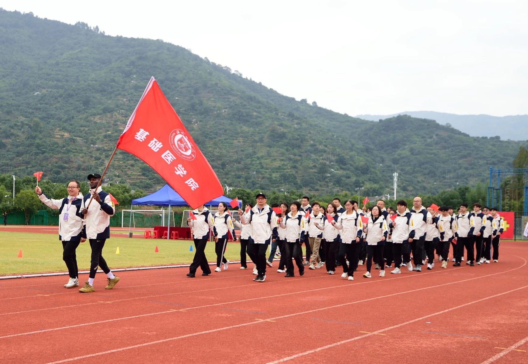 开幕式上,学院师生运动员代表们身着统一服装,步伐坚定有力,高喊“基础匠心 铸魂育人”的口号,走过主席台前接受检阅,向全校师生展现锐意拼搏、奋发向上的精神风貌。