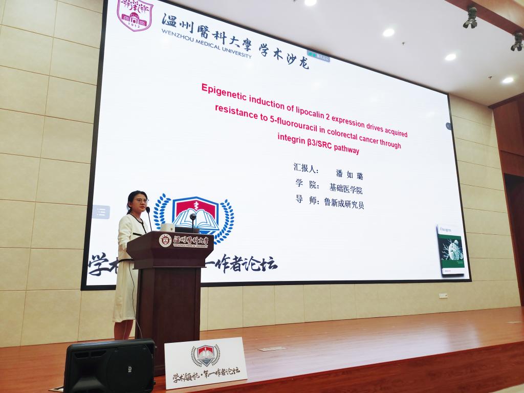 5月12日,蜜桃视频 第16期学术领航·第一作者论坛学术交流活动在生物医药科研楼二楼报告厅举办。蜜桃视频 2020级基础医学博士研究生潘如璐为本次活动的主讲人,博士生导师、研究员鲁新成作为嘉宾出席。活动以线下交流的方式开展。主讲博士研究生潘如璐首先做报告,对所在课题组2021年发表的Oncogene文章《Epigenetic induction of lipocalin 2 expression drives acquired resistance to 5-fluorouracil in colorectal can...